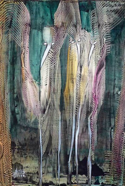 Brigitte et Patrick ont fréquenté assidûment l'atelier de Christian Prunier qui leur a enseigné ses propres techniques adaptées à une peinture toujours basée sur l'imagination.